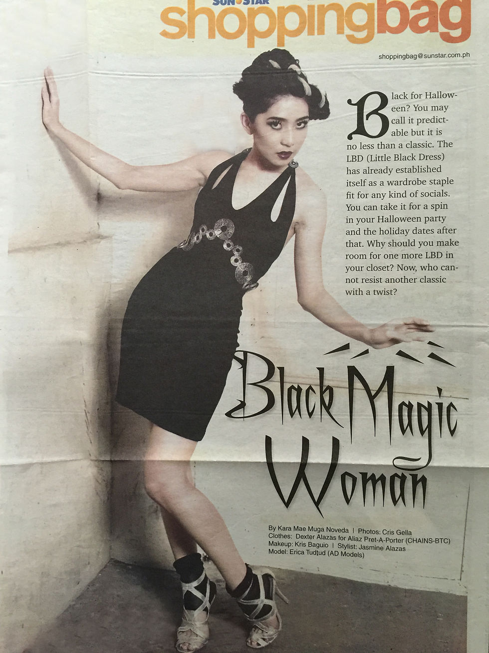 Erica was featured as the "Black Magic Woman" wearing the creations of Dexter Alazas, a renowened Filipino designer. She wore Alazas' different versions of a classy LBD (Little Black Dress).